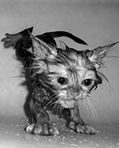 Оттуда показалась маленькая несчастная мордашка. Котенок немного обсох, согрелся и уже мог жалобно пищать, что он и поспешил сделать.